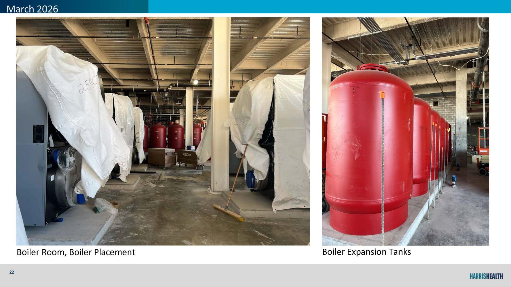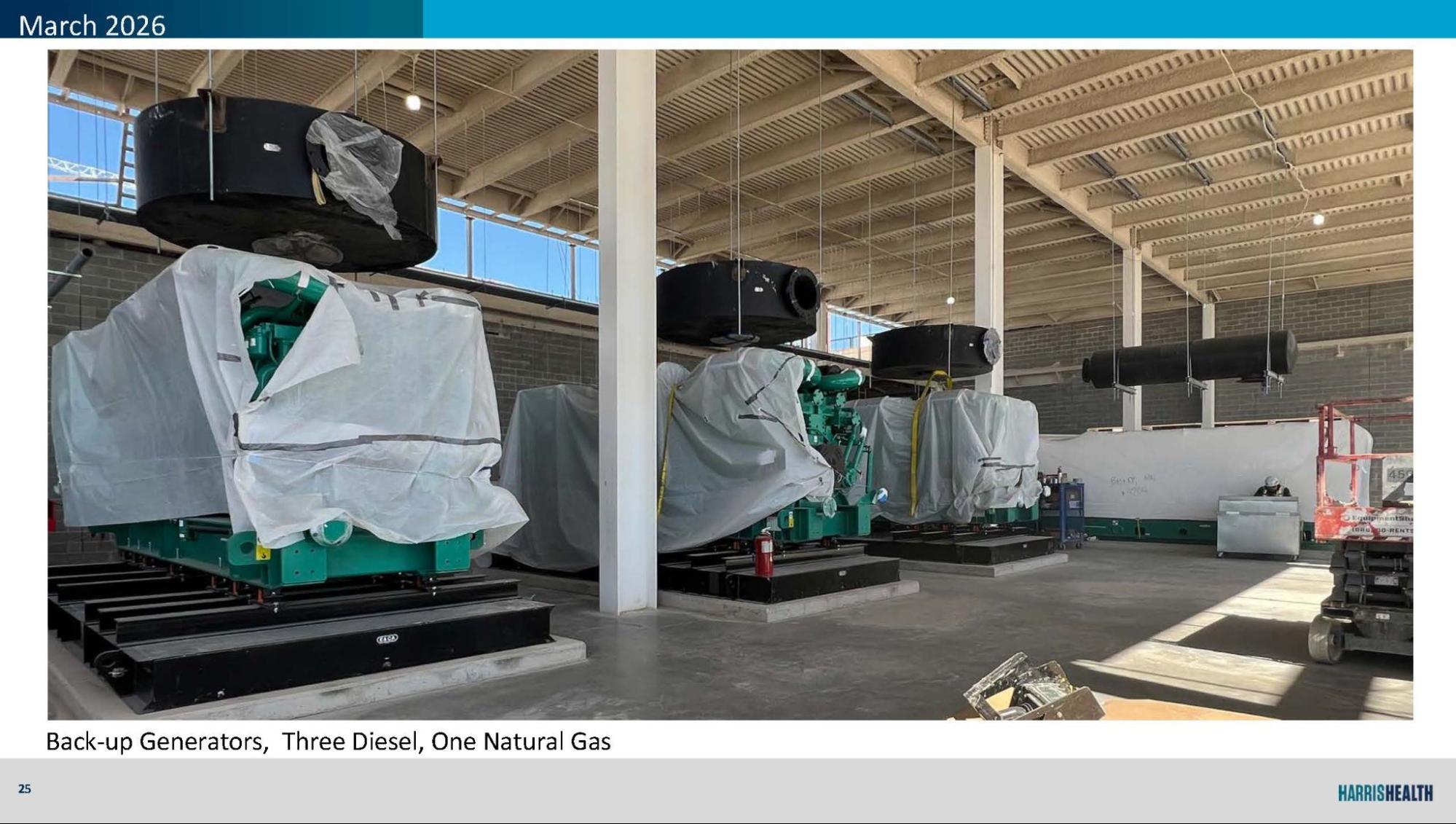 CUP mechanical, electrical, and boiler systems taking shape, including generator placement, switchgear setup, and domestic water infrastructure.