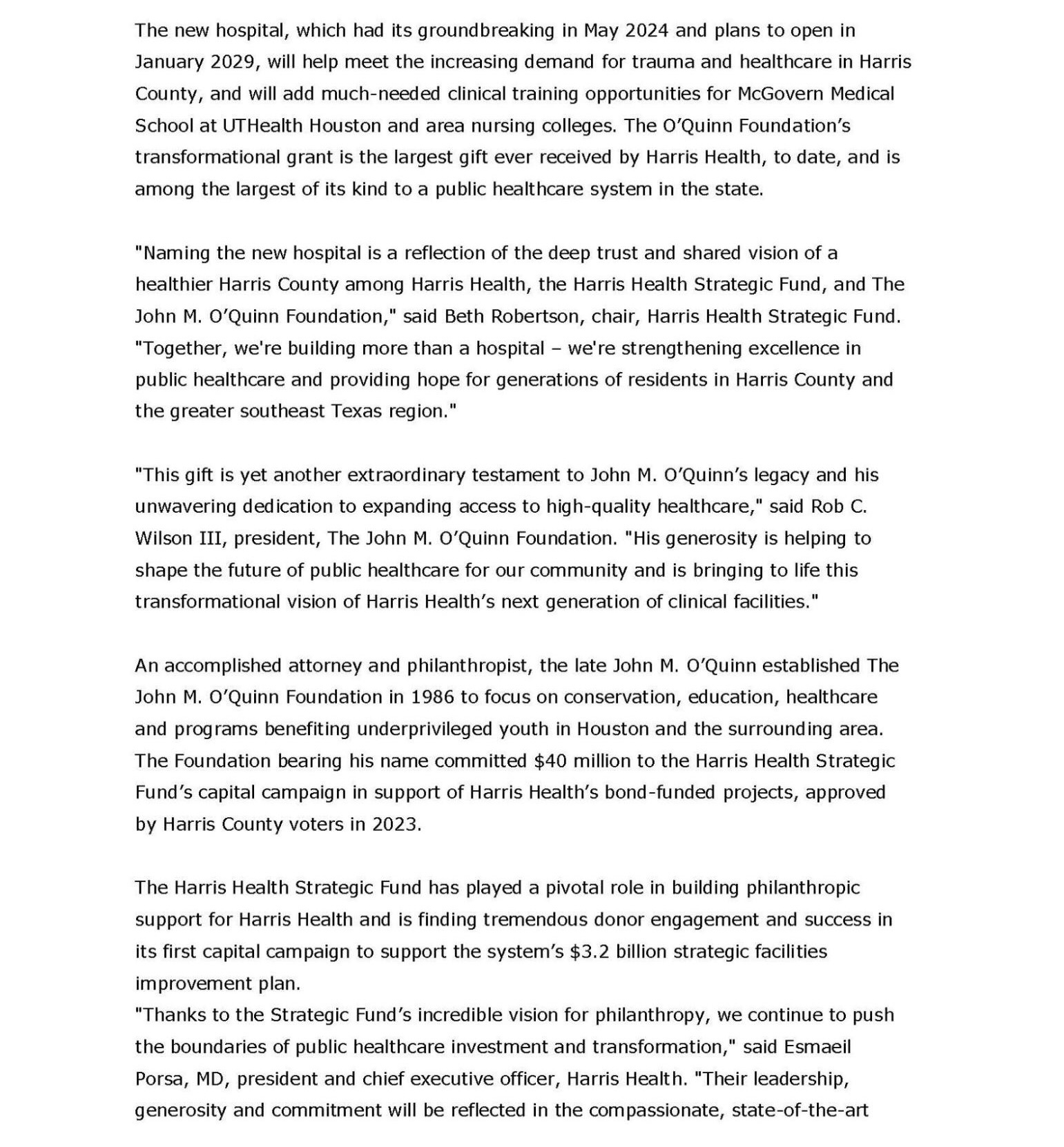 We are excited about the new plans underway for the John M. O’Quinn Hospital and our project partners are committed to engaging the local community to ensure that we meet the needs and expectations for this new trauma level 1 hospital. Your voice and input matters. Please share your thoughts in the survey below or call PPG Global at 1-866-463-9525