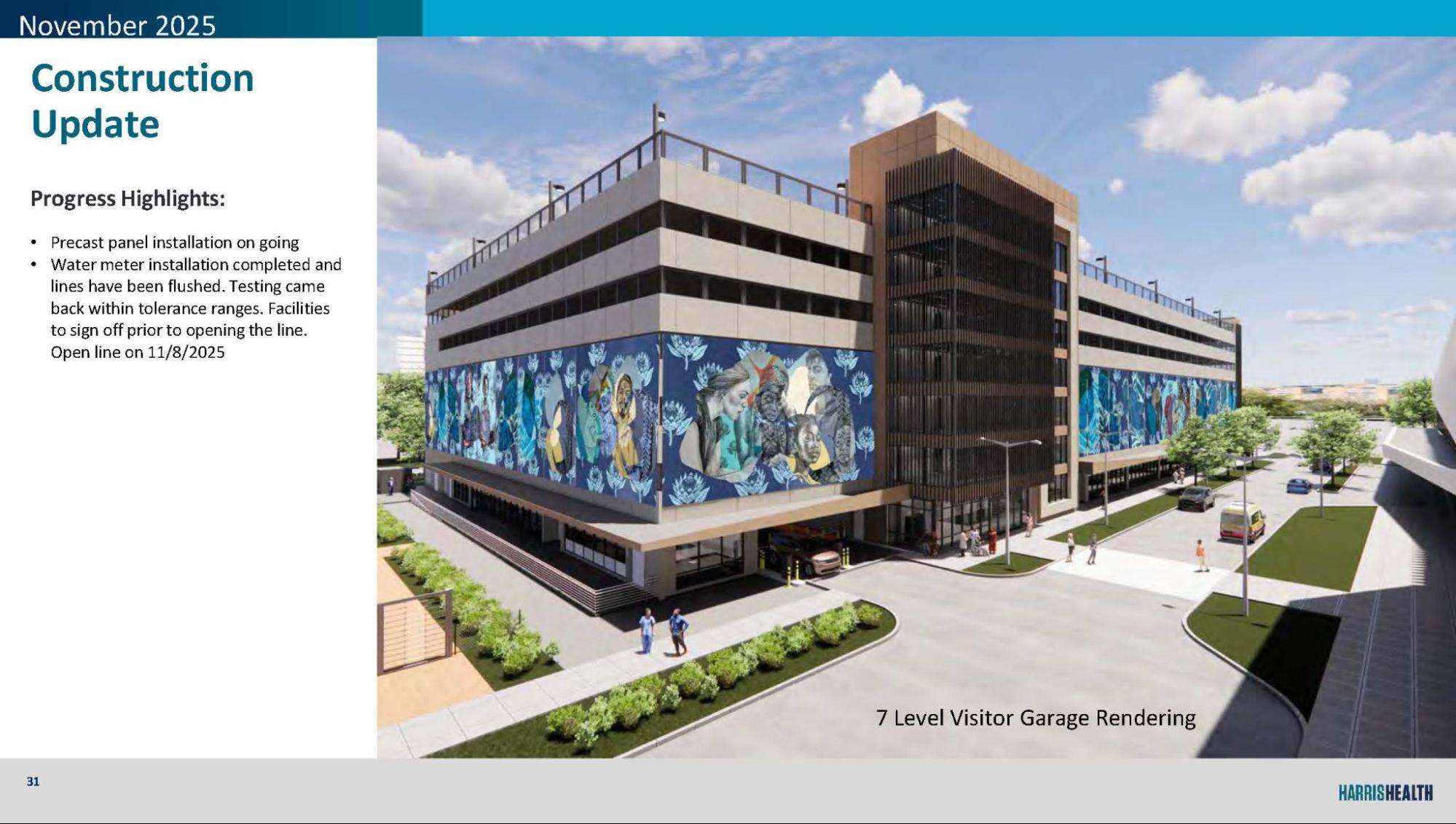 Attached is the November 2025 construction progress update for the LBJ Campus Expansion. The project remains on schedule, with several key milestones recently achieved: