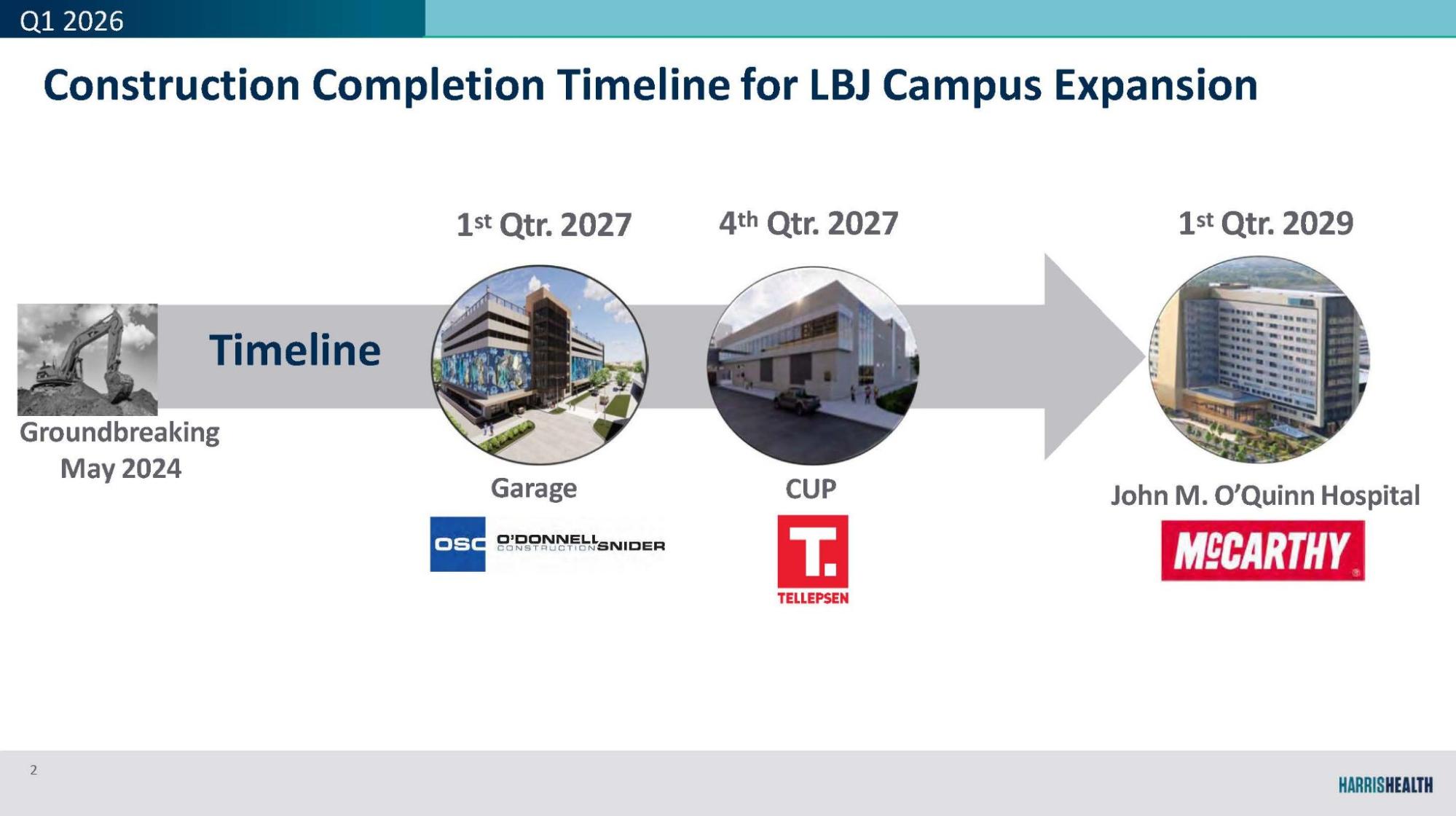 Harris Health is committed to providing high quality care to all residents of Harris County, with a special emphasis of addressing health disparities among vulnerable and medically underserved populations. As part of that commitment, the proposed Trauma Level 1 Hospital was recently named the John M. O’Quinn Hospital and is planned to open in January 2029. The new hospital campus will provide improved care for the medical, social and mental health needs of the northeast communities.