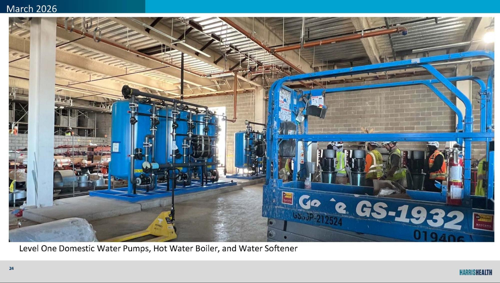 CUP mechanical, electrical, and boiler systems taking shape, including generator placement, switchgear setup, and domestic water infrastructure.