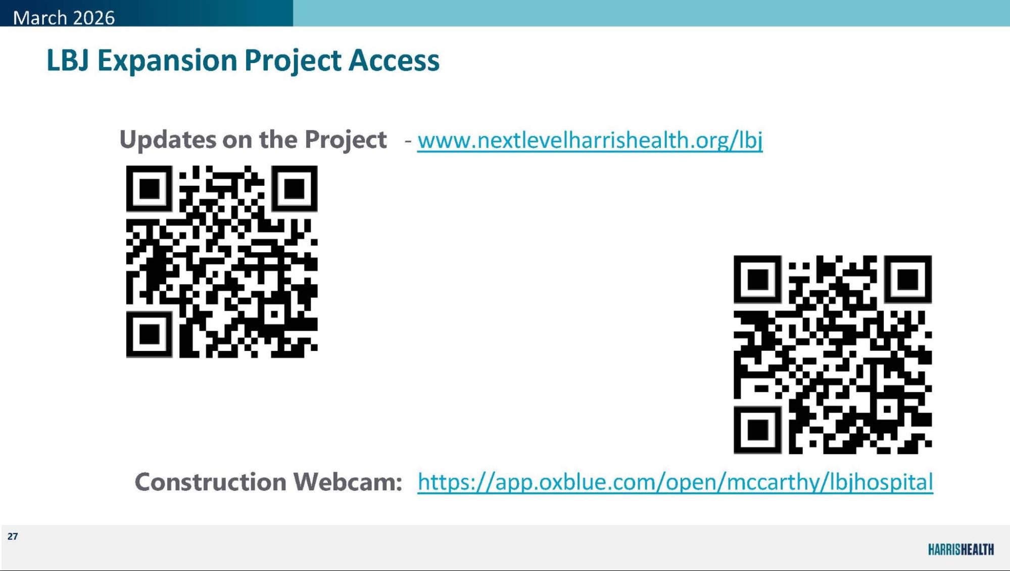 Harris Health invites you to stay connected as we grow. Access the live webcam to see progress on the Lyndon B Johnson Hospital campus.