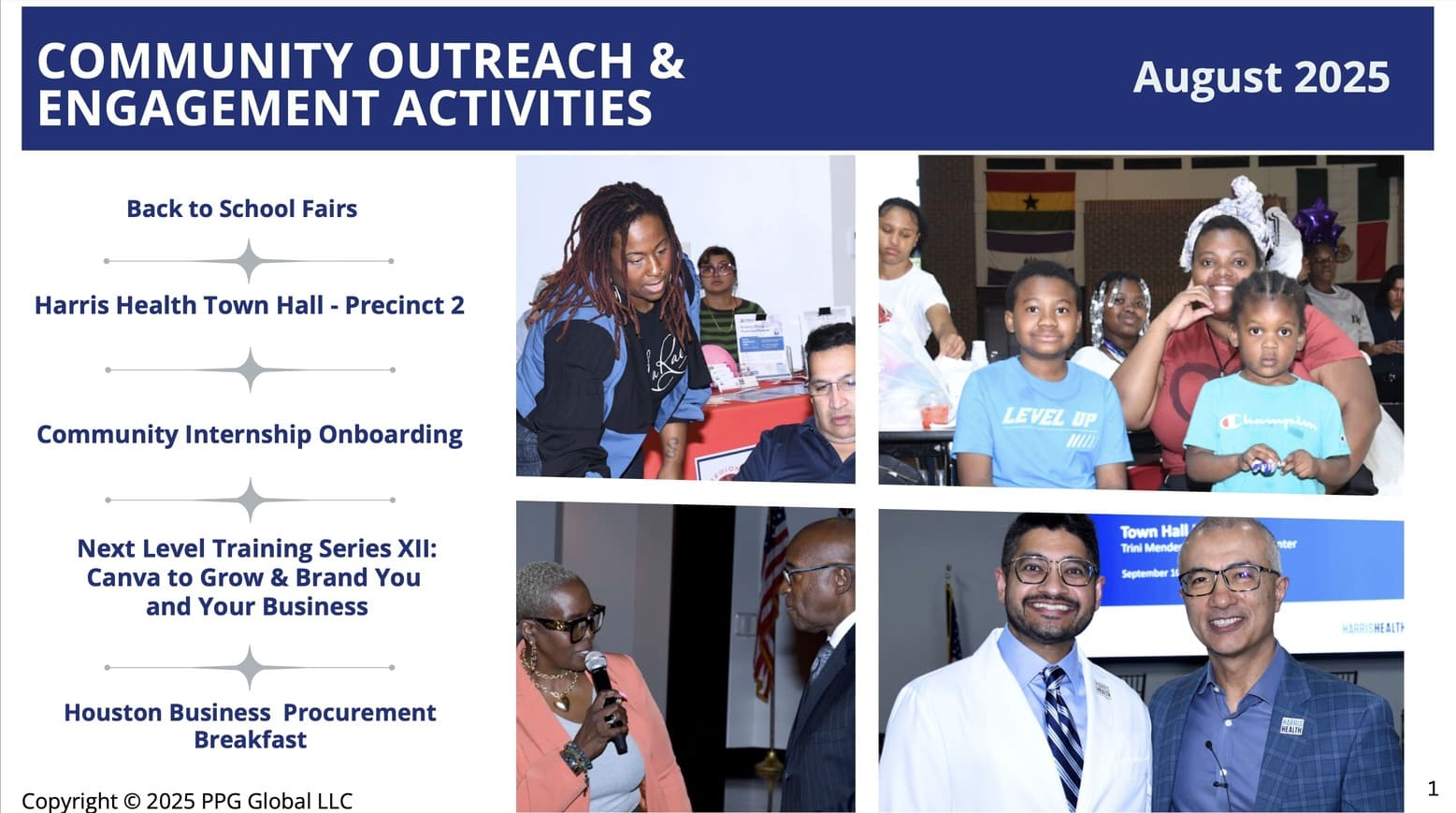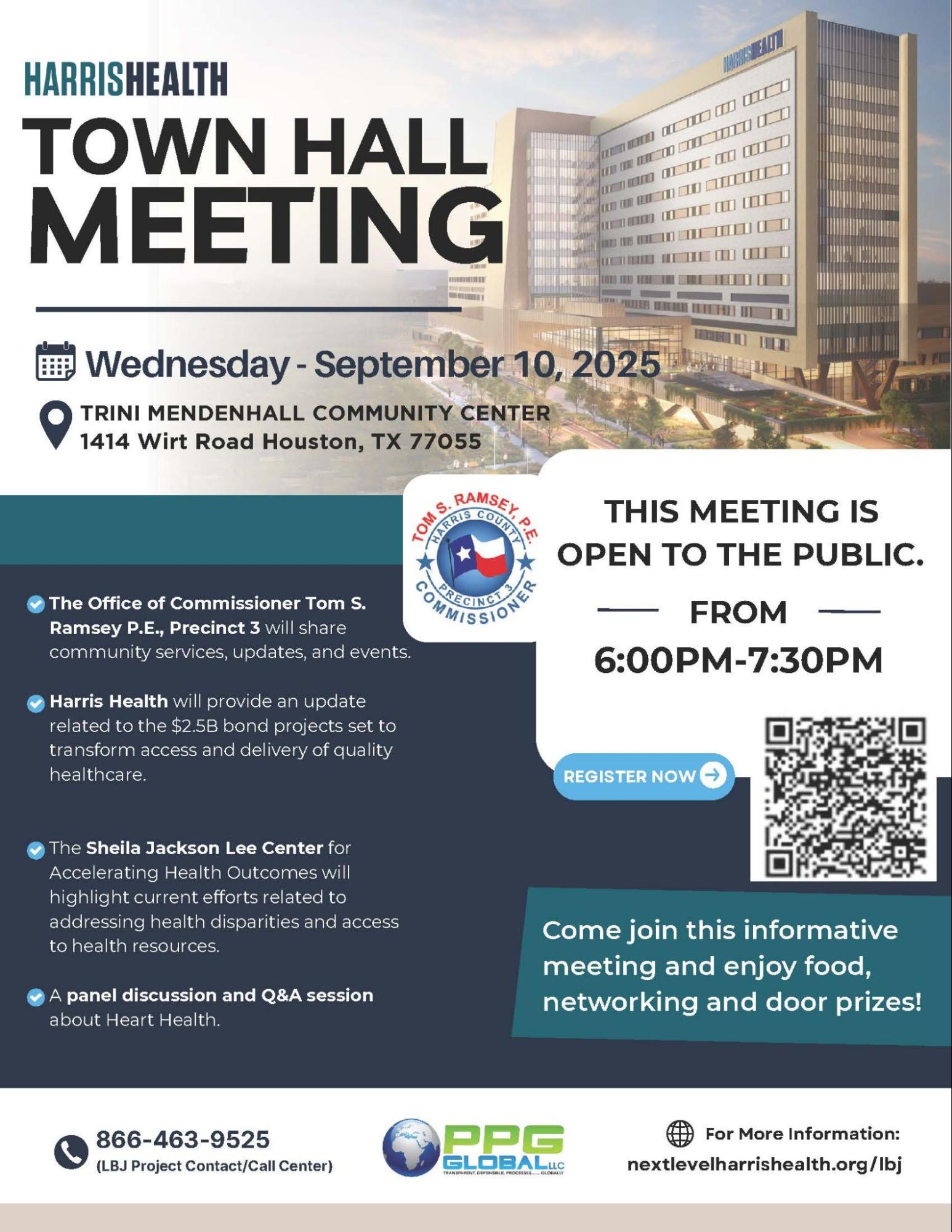 10/21/2025 | Harris Health Town Hall Meeting- Precinct 4 | Freed Community Center 6818 Shadyvilla Ln Houston, TX 77055 |